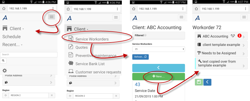 << Click to Display Table of Contents >> Navigation: Network & Remote Installation > RI - optional responsive remote interface > RI How do I...? > Create a new workorder / quote / PM via RI |