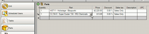 You will note that Serial Numbers and Part Warehouses are not selectable in a quote Parts – this is because a quote does not affect inventory.