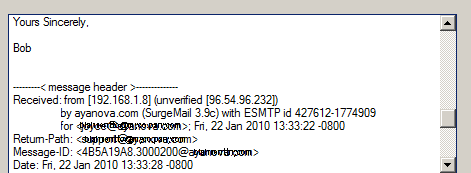 NOTE: If you want the email message header to also be inserted in the Service Notes field (it will be inserted after the email message), make sure that your Options for this is check-marked.
