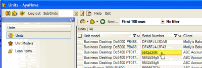 AyaNova will automatically move you to the Service Workorder Items grid, where will automatically filter the Items grid of the Service navigation pane to display only workorder records where this unit was selected.