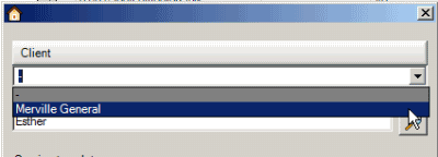 6.Now drop down the client selection list - it will show all clients that have that text entered in one of its objects. In this example, there is only one client that has the text Esther listed in any of its related objects.