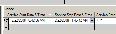 3.click within the empty Service Start Date & Time field which will automatically put in today's date and time (as well as Stop Date & Time an hour later and the billable Service Quantity)