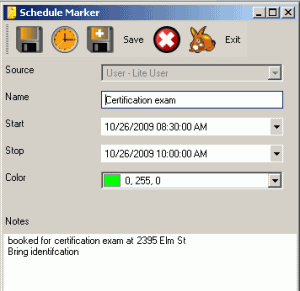 •Let’s say that a schedulable user has four exams happening over the next couple of weeks for their certification and they want to enter in a marker to display regarding this so that the dispatcher knows not to schedule service in these time periods for the user.