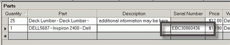 A part in an AyaNova workorder that is serialized will have the AyaNova part's serial number display under the invoiced part in the QuickBooks invoice.