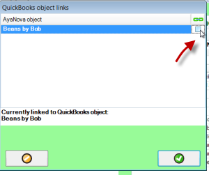 3. Uncheck the checkmark under the link symbol for the AyaNova object you no longer want linked to this QB Online object