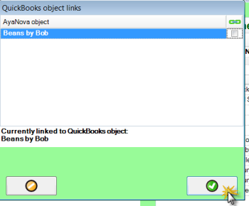 4. Dialogue window will display that this AyaNova object is NOT linked to any QB Online object.