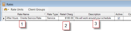 AyaNova Rate fields identified: