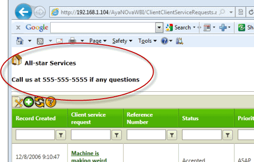 For example, if the URL your client uses to bring up your WBI login page is normally http://192.168.1.104/AyaNovaWBI/login.aspx, provide to your client the following URL link instead